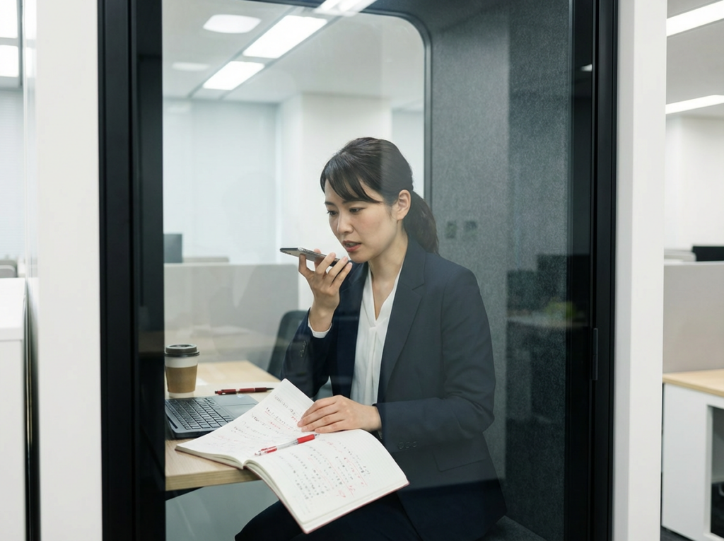 やり方は単純です。会議で言いたいことを30秒で録音し、翌日に同じ内容をもう一度録音します。違いを見るのは1点だけ。結論が先か、要点が二つに絞れているか、言い直しが短いか。観点を固定すると、改善が見えるようになります。