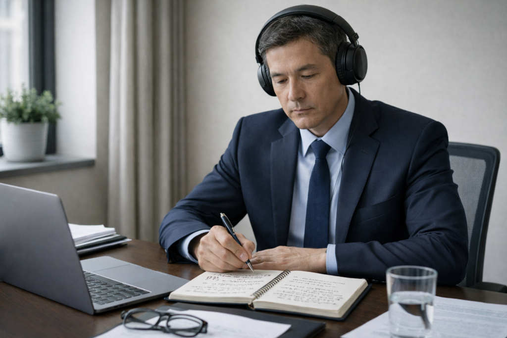 会議の型は、相づち→要約→確認質問→意見。商談の型は、導入→提案→懸念処理→次アクション。プレゼンの型は、結論→理由2つ→次の一手。骨組みが固定されるほど、言い回しの精度は後から上げやすくなります。